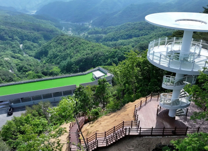 해발 840m, 등산·드라이브 코스로도 유명하며, 정상 전망대에서 360도 탁 트인 백두대간 경치를 감상할 수 있습니다.